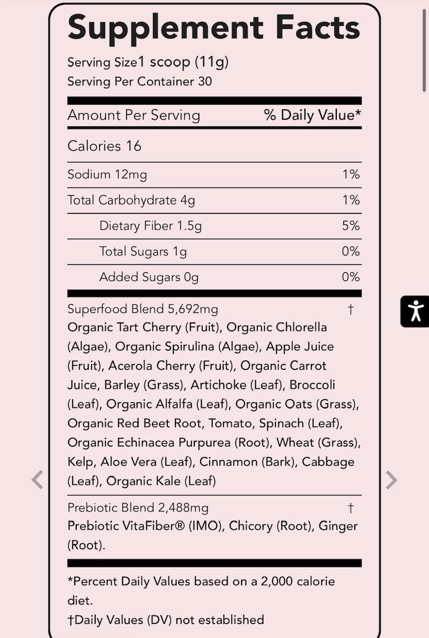 20 different all-natural fruits, vegetables, grasses, and seaweeds.