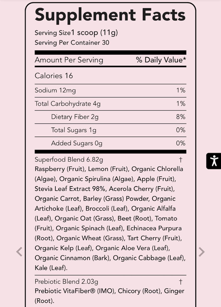 20 different all-natural fruits, vegetables, grasses, and seaweeds.